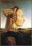 przeciwników politycznych, jak to zwykle wówczas bywało. Można śmiało powiedzieć, iż dwór był dobrze obmyślonym i zorganizowanym dziełem sztuki. I właśnie na dworze w Urbino toczy się akcja "Dworzanina" Baltasare Castiglione - dzieła przedstawiającego ideał renesansowego człowieka. W niezwykłej atmosferze Urbino urodził się Rafael i w cieniu pałacu książęcego pobierał pierwsze nauki. I własnie wspomniany Piero della Francesca wspaniale sportretował parę książęcą : Battistę Sforza (zresztą ciotkę naszej Bony) i Federica da Montefeltro (obok). Dzieła te znajdują się w Galerii Uffizzi we Florencji. |